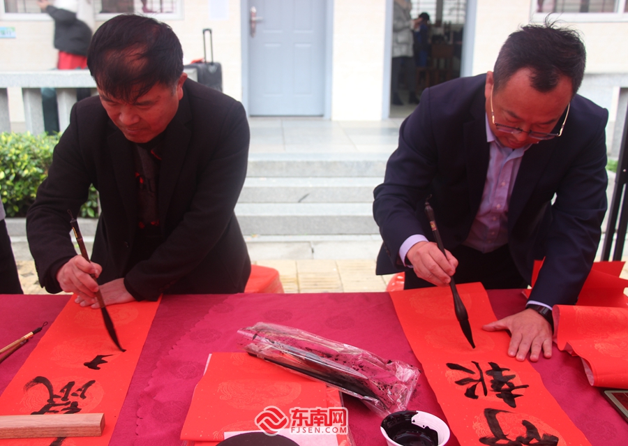 書法家在現場揮毫潑墨,帶給村民們新春祝福。東南網記者 謝玉妹 攝