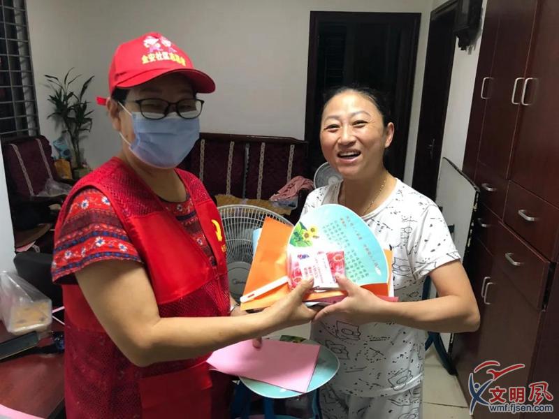 工作人員到群眾家里走訪,發(fā)放文明創(chuàng)建宣傳材料。湖里區(qū)委文明辦供圖