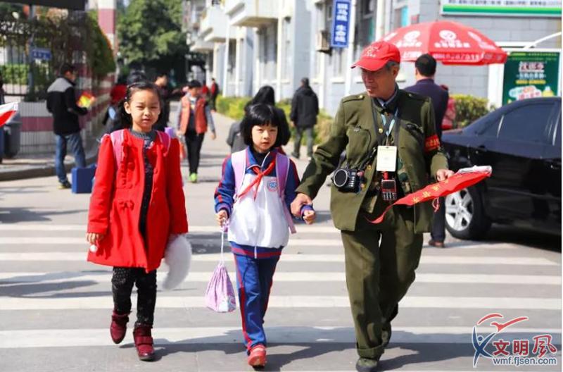 黨員志愿者高金聰數十年如一日幫助孩子安全過馬路。鄭學德 攝