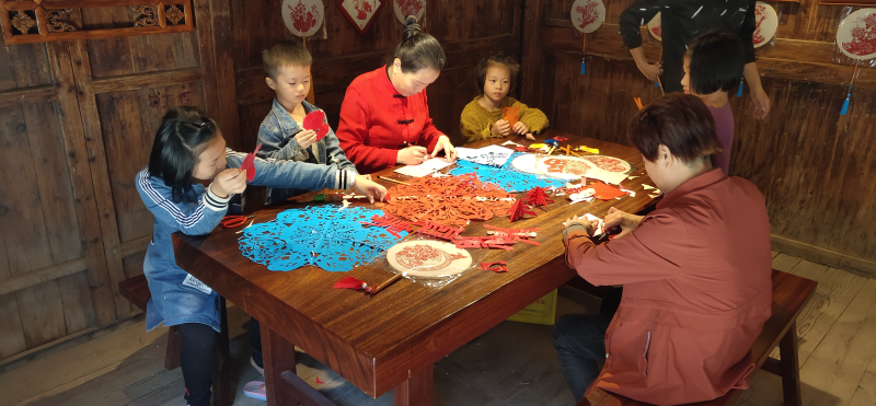 孩子們體驗(yàn)剪紙藝術(shù)(吳家泉供圖)