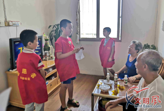 小小志愿者為社區老人表演節目,和睦鄰里關系。(湖里街道供圖)
