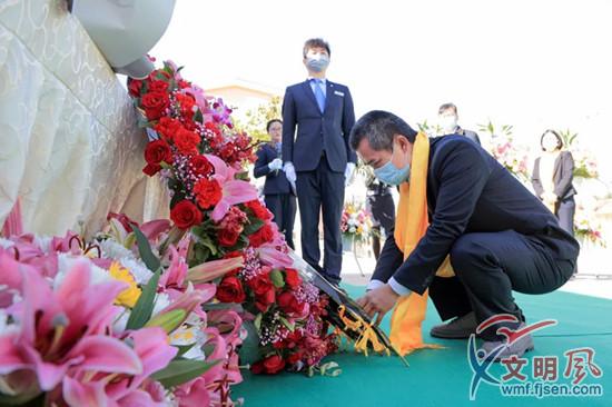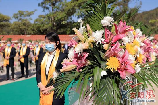 當天上午9時,公祭儀式正式舉行現場氣氛莊嚴肅穆。鳴聲九響,全體肅立默哀,隨后禮儀人員敬獻花環,主祭人敬獻茗茶、果品、鮮花,禮儀師恭讀祭文......全體行三鞠躬禮,并依次上前獻花。公祭典禮結束后,在場人員抬花籃來到骨灰樓前,并妥善擺放。