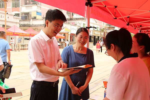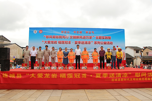 文明風8月3日訊 8月1日上午,連城縣在中山街廣場舉辦“移風易俗我先行 文明新風進萬家”主題實踐暨“大愛龍巖 福蓮冠豸·夏季送清涼”系列公益活動。連城縣委常委、宣傳部部長陳祺,縣委文明辦主任李榮華,縣紀委常委、縣監委委員吳文生,縣委宣傳部二級主任科員楊鎮生,縣總工會四級主任科員謝曉勇等領導出席活動。