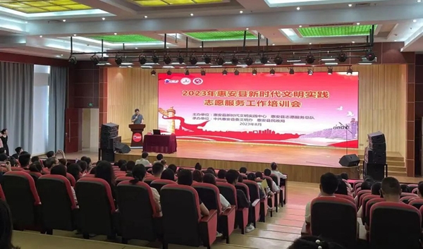 日前,惠安縣在新時代文明實踐中心召開了2023年新時代文明實踐志愿服務工作培訓會,全縣各級文明單位、文明校園、文明旅游風景區的志愿服務工作負責人員共200多人參加了會議。