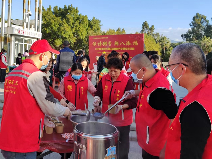 文明風1月18日訊 “過了臘八就是年,一年一歲一團圓”。為弘揚中華民族傳統文化,傳遞寒冬溫暖,1月18日上午,涵江區新時代文明實踐中心、涵江區新時代文明實踐志愿服務總隊以傳統節日“臘八節”為契機,組織文明單位、愛心社會團體的志愿者在涵江人民公園開展“濃情粥香 臘八添福”文明實踐活動。