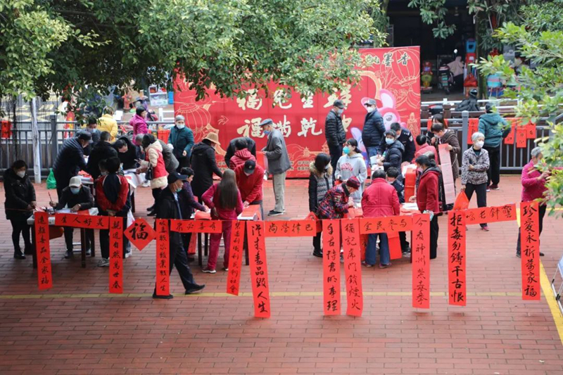 2023年1月11日,五里亭社區文明實踐站聯合南平司法強制戒毒隔離所、延平區老干所等單位開展“喜迎新村送春聯、禁毒宣傳飄墨香”活動。南平市委文明辦 供圖