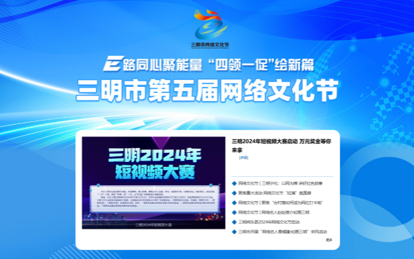 三明市第五屆網絡文化節通過征集正能量的網絡作品,充分發揮激勵人、鼓舞人、引領人的重要作用,進一步加強網絡內容建設,激揚正能量,澎湃大流量。