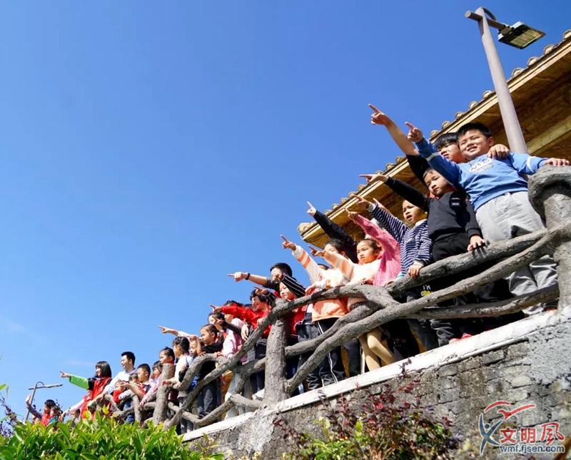 從918米高的白交祠幸福院出發,前往985米的白交祠光明頂。重陽登高望遠,志愿者們帶領孩子們爬上由石頭砌成的階梯,登臨山巔,舉目遠眺,群山盡在眼中,城市盡在腳下。
