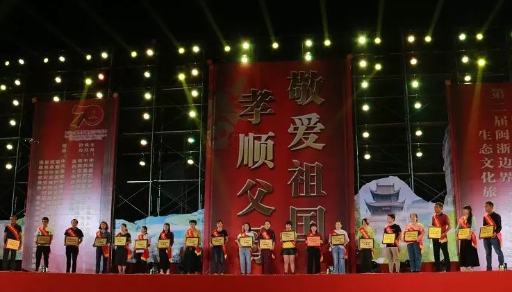 晚上,歌曲《中華雙孝道》和誦讀《敬孝禮》拉開了“敬孝禮”大典的序幕,接著是“鄉風楷模”的頒獎儀式,頒發“五代同堂長壽家庭”、“支持國防建設好家庭”、“好媳婦”、“優秀學子”等獎項。