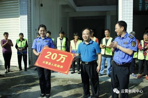 云霄縣領導方偉儀、蔡美華、張永久與環衛工人代表逐一握手并叮囑他們在工作中注意安全、保重身體。