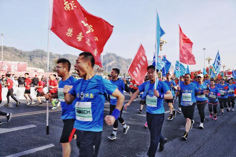 文明風(fēng)11月12日訊(通訊員黃志宏 劉紅)11月10日上午8︰00時(shí),伴隨著武夷山國際馬拉松開賽的一聲槍響,一支揮舞著禁毒旗幟、身著藍(lán)色禁毒服裝,排著整齊方陣的隊(duì)伍,在“健康人生,綠色無毒”口號(hào)引領(lǐng)下,雄糾糾、氣昴昴地奔跑在賽道上,在馬拉松紅色隊(duì)伍映襯下顯得格外醒目,由建陽區(qū)120多名禁毒志愿者組成的禁毒公益跑團(tuán)注定成為這個(gè)賽場上最靚麗的風(fēng)景,他們是一群可愛的人,盡管隊(duì)員們年齡懸殊、性別不同,但因?yàn)閻叟c責(zé)任走到一起,他們懷揣“天下無毒”的理想,為禁毒代言、為愛奔跑。