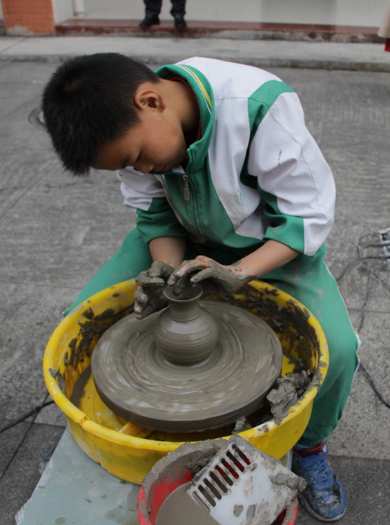 學生展示拉胚過程 東南網記者 陳小妮 攝