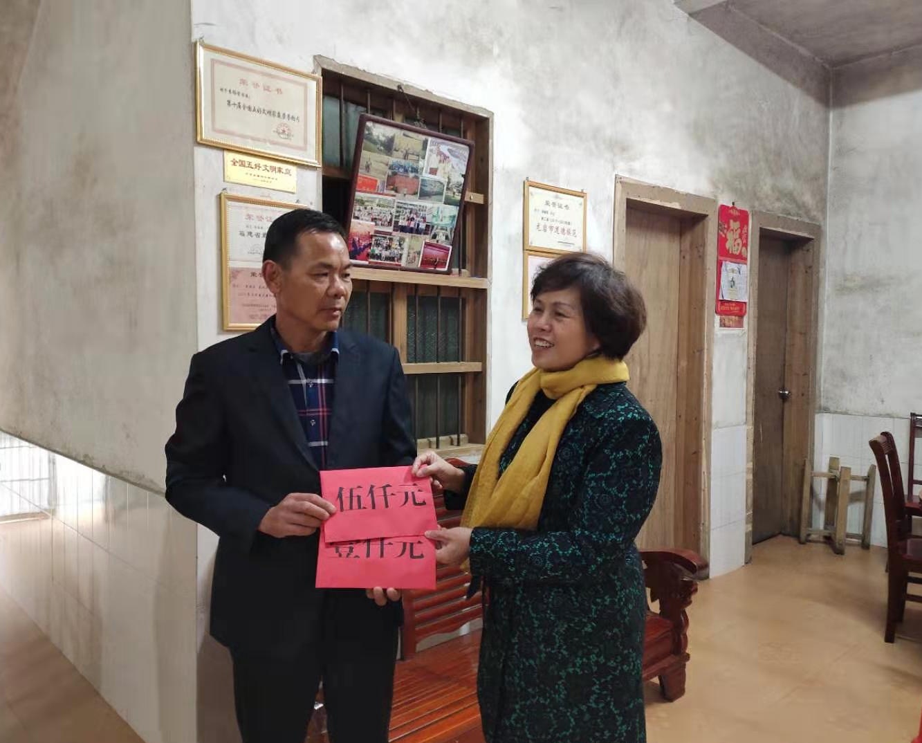 慰問組為省道德模范袁錫榮送上慰問金 馬兆湘攝