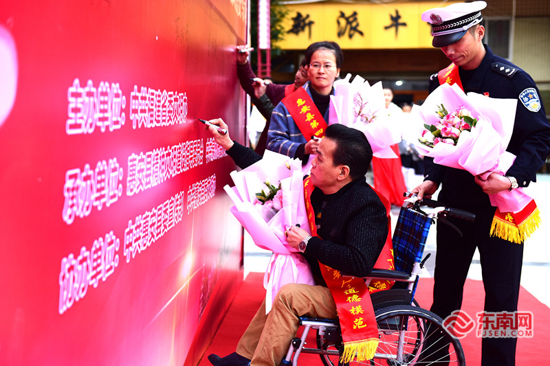 道德模范在留言板簽名。東南網記者 林婕 攝