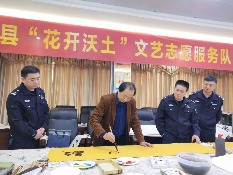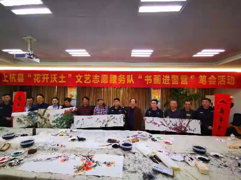 文明風1月6日訊(通訊員馬兆湘 鐘衛波)為進一步增進警民友誼,豐富警營文化生活,2020年1月2日下午,上杭縣“花開沃土”文藝志愿服務隊深入到縣公安局城關派出所開展書畫進警營筆會活動。
