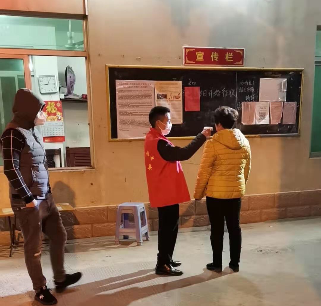 對小區來訪人員進行體溫測量 華安縣委文明辦供圖