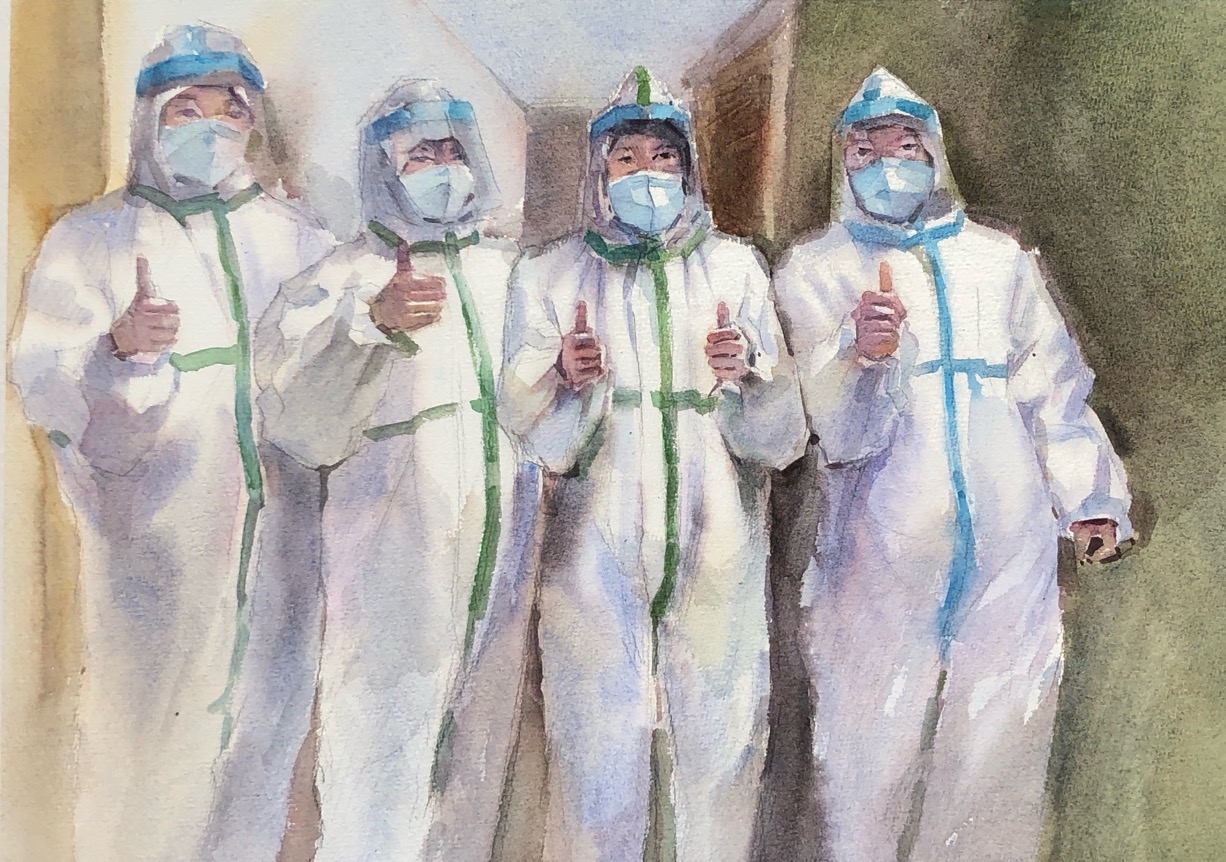 繪畫 《眾志成城 中國加油》作者:謝念群 倉山區委文明辦供圖