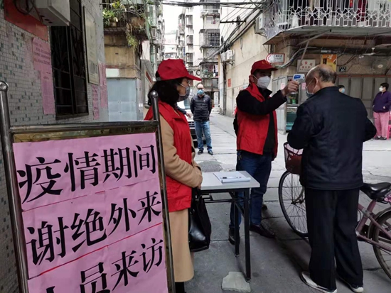 “請您下車測量體溫,登記下您的個人信息、聯系方式。”“疫情期間,小區謝絕外來人員到訪,請盡量減少不必要的接觸。”“您要送的東西放在這邊,讓業主來這邊領取就可以了。”……在各個小區出入口,身著紅色馬甲的黨員志愿者們認真做好值班值守工作,守好守嚴小區“安全門”。