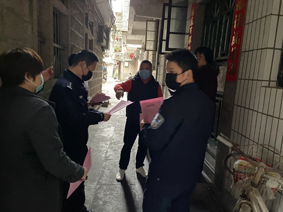 縣委文明辦黨員志愿者協助小東社區開展“掃樓”入戶排查。蘇彩燕 供圖