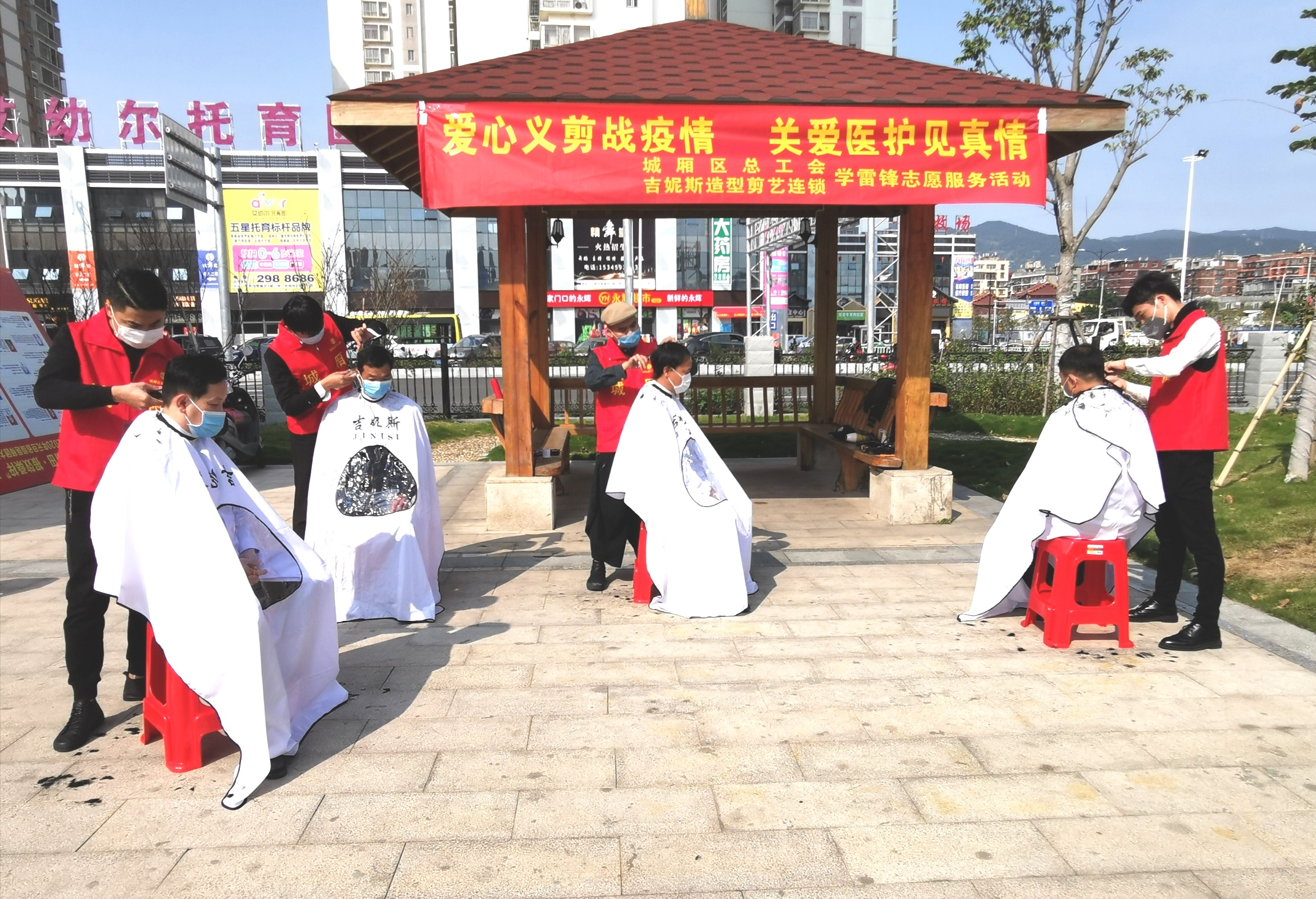 3月3日上午,城廂區(qū)總工會(huì)聯(lián)合吉妮斯造型剪藝連鎖在區(qū)醫(yī)院開展“愛心義剪戰(zhàn)疫情 關(guān)愛醫(yī)護(hù)見真情”學(xué)雷鋒職工志愿服務(wù)活動(dòng),現(xiàn)場共為39名疫情防控一線醫(yī)護(hù)人員理發(fā),東海鎮(zhèn)攜手尚雅、圣微納造型三位理發(fā)志愿者們?yōu)榉酪咭痪€的鎮(zhèn)干部們及出行不便的貧困戶們免費(fèi)理發(fā);3月5日,城廂區(qū)煙草專賣局開展“學(xué)雷鋒見行動(dòng),戰(zhàn)疫情當(dāng)先鋒”志愿服務(wù)活動(dòng),組織志愿者們?yōu)閳?jiān)守在抗疫一線的環(huán)衛(wèi)工人們送上防護(hù)口罩、一次性手套和84消毒液。