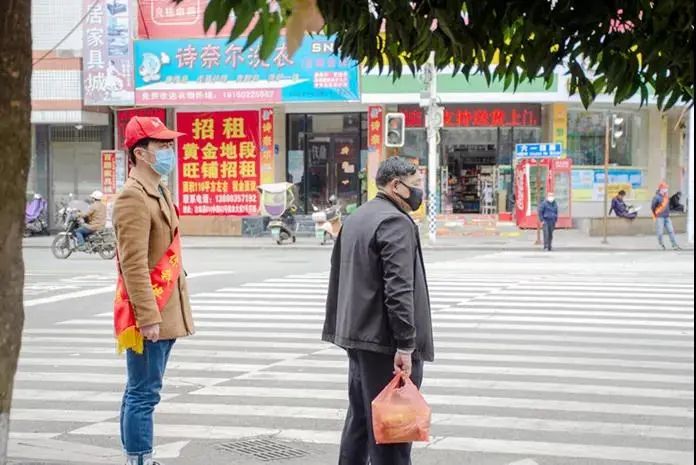 志愿者在斑馬線引導(dǎo)群眾。古田縣文明辦 供圖