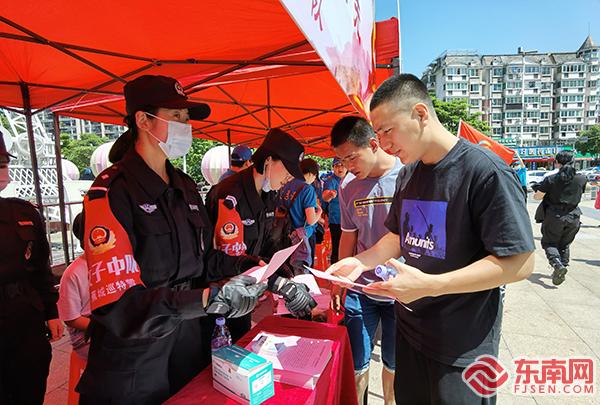 圖為公安女子巡特警志愿服務隊向市民宣傳相關常識。東南網記者 葉伏國 攝