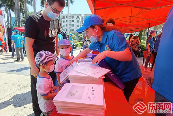 圖為理論宣講志愿服務隊志愿者向市民分發相關書籍。東南網記者 葉伏國 攝