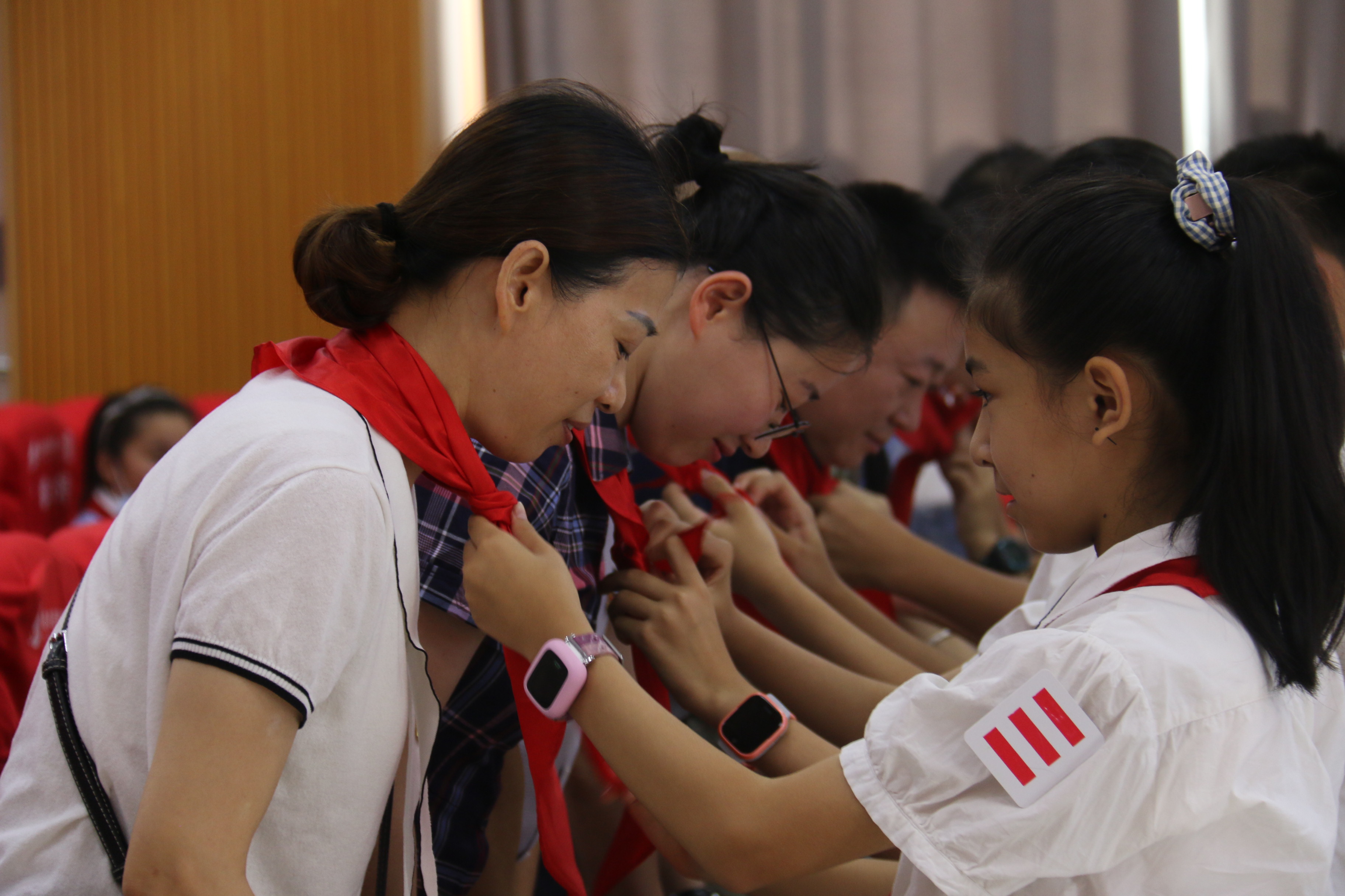 分享會上孩子們為參會嘉賓敬獻紅領巾