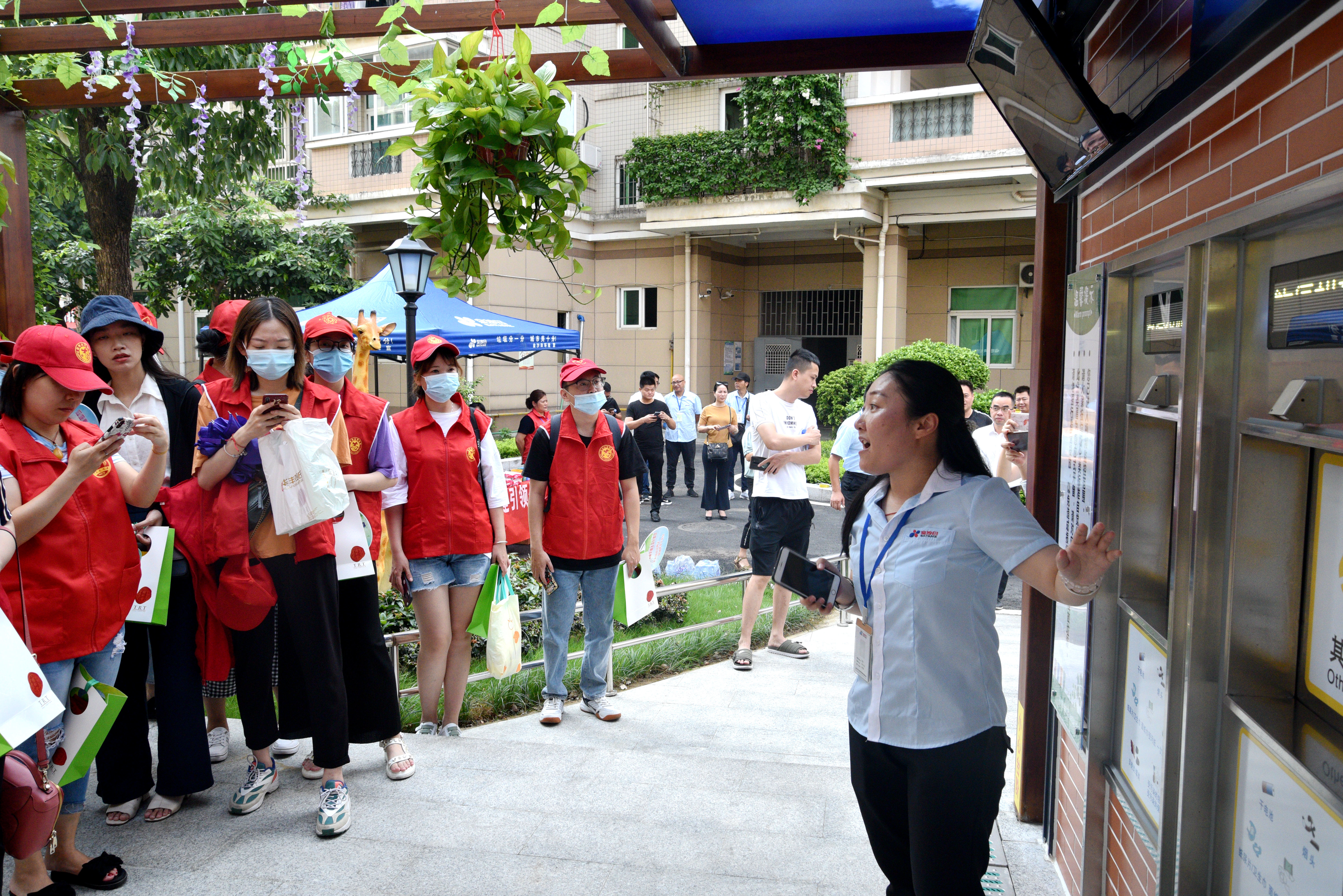 與會(huì)代表一行現(xiàn)場(chǎng)觀摩了傲梅苑垃圾分類志愿服務(wù)開展情況 倉山區(qū)委文明辦供圖