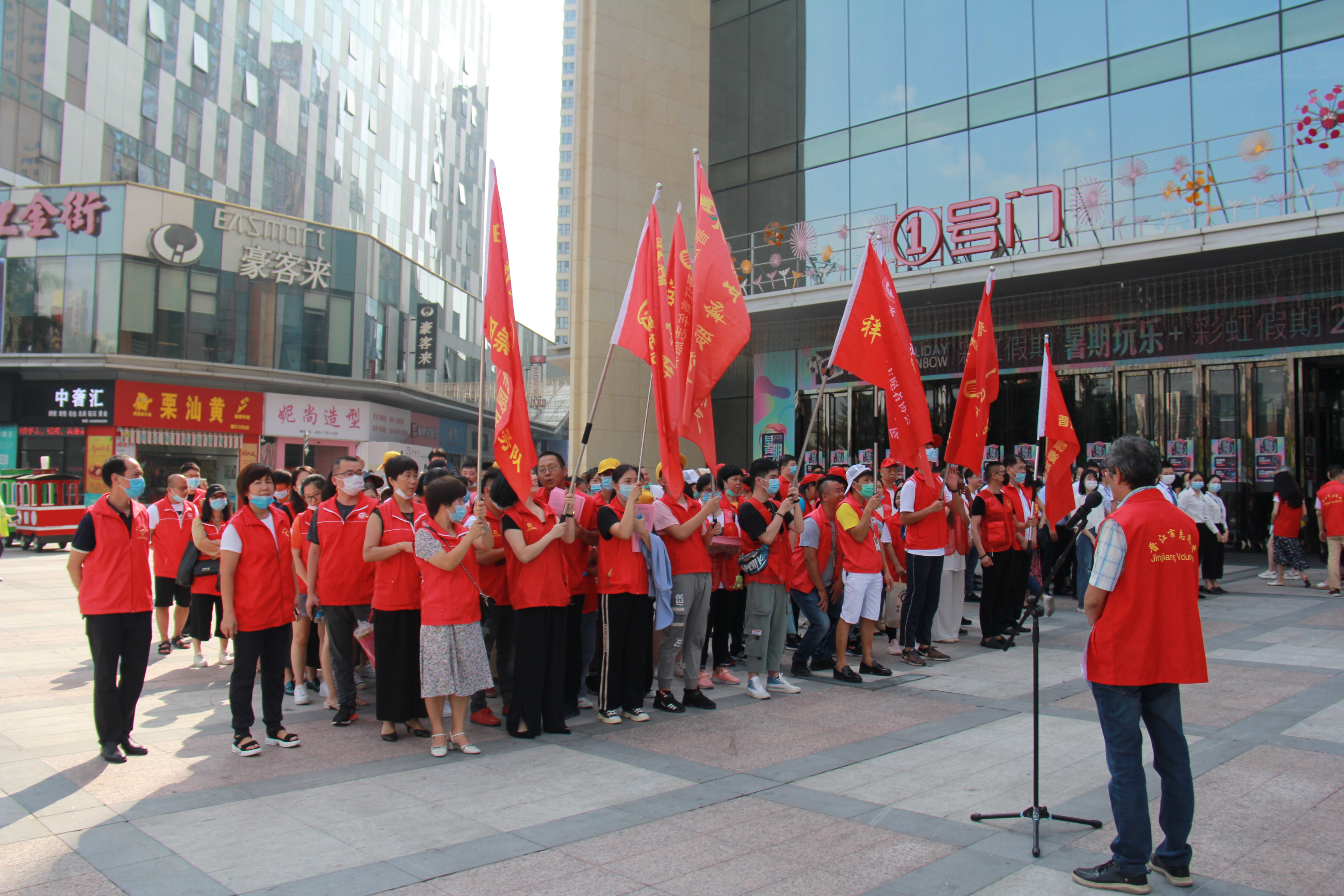 上午8:30分,在晉江萬達,由晉江市新時代文明實踐中心主辦,晉江市委宣傳部(文明辦)、晉江市衛健局、晉江市市場監督管理局、晉江市梅嶺街道黨工委、辦事處,各鎮(街道)新時代文明實踐所承辦的 “文明創城 志愿同行”晉江市“志愿者統一行動日”啟動儀式準時舉辦。