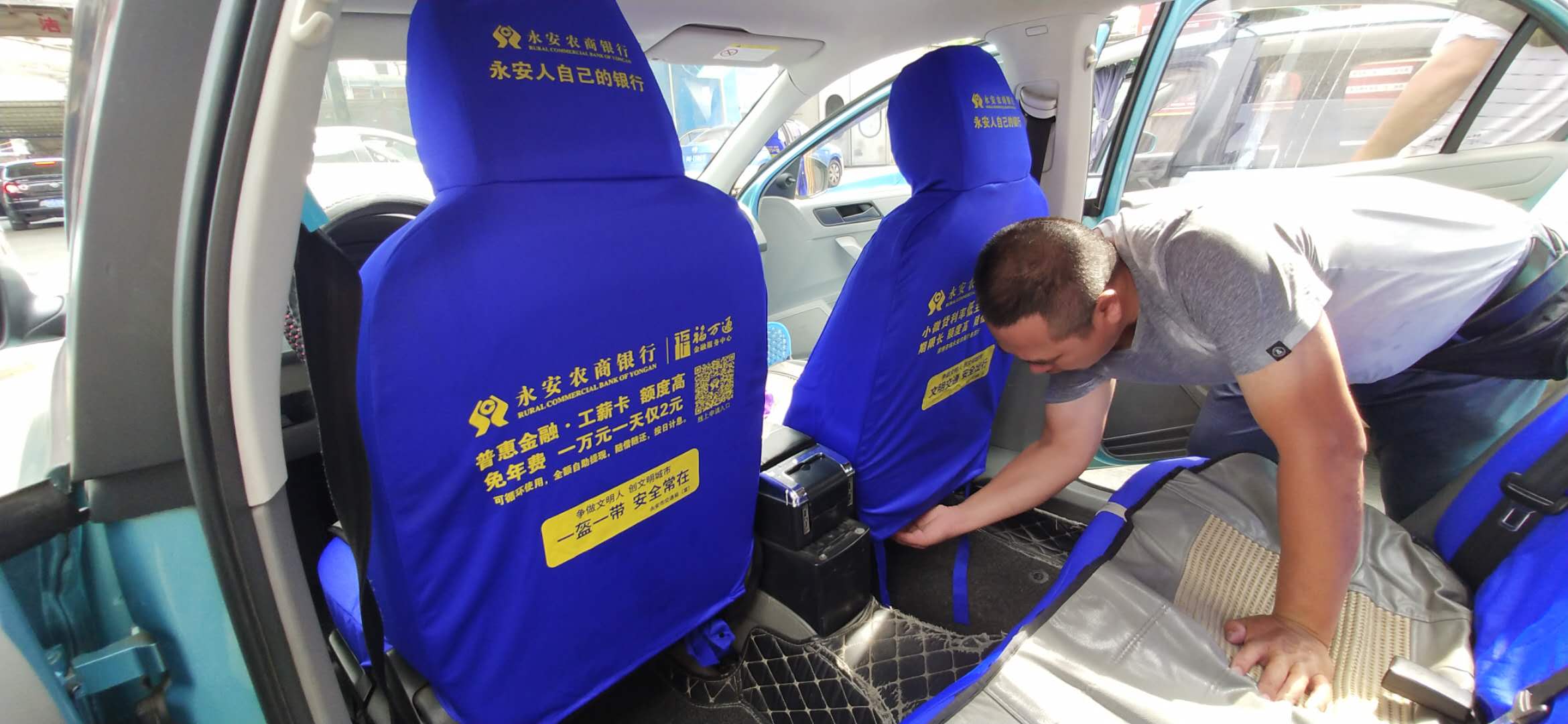 文明風7月21日訊 (通訊員 鄭成、吳彩云)爭做文明人,共創文明城。從7月19日開始,永安市啟動“全城文明行”公益宣傳活動。活動由永安市委文明辦牽頭,協調永安市交通運管所永安農商銀行等單位聯合主辦。全城151部出租車,全部更新換上藍色文明宣傳“椅套”,藍色布椅套上醒目地印著黃色文明宣傳標語:一盔一佩,安全常在;城市文明,從我做起;做文明人,創文明城;講衛生,懂禮貌,守紀律,傳文明;文明與你同行,創建從我做起;文明不在一時,創建任重道遠……都是言簡意賅一目了然廣大市民群眾“一看就明白”的文明宣傳公益廣告。