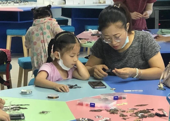 村里社區開展“漢韻國風,步搖情懷”親子活動,以此來拉近社區小居民之間以及小居民與父母之間的關系,通過相互協作完成作品,一起感受美好親子時光