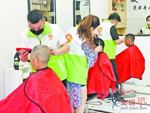 江頭街道久久愛心志愿服務(wù)隊志愿者正在義務(wù)剪發(fā)。江頭街道供圖