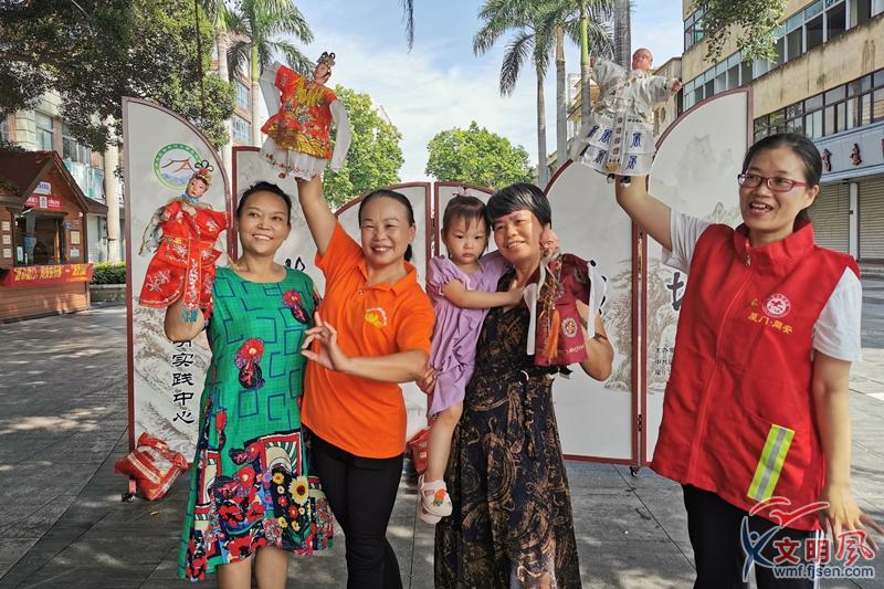 布袋木偶藝術歷史悠久,源遠流長。2019年廈門布袋木偶戲入選省級非物質文化遺產。而有著深厚民間文化底蘊的同安,在一百多年前,就已十分盛行布袋木偶戲。陳慧萍用活靈活現的道具、引人入勝的情節,講述布袋木偶戲的文化。深深地吸引了群眾們的眼球,同時現場與群眾精彩互動,贏得群眾們的陣陣掌聲和歡笑聲。