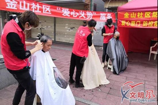 疫情防控期間,志愿者為居民義剪。金山街道供圖