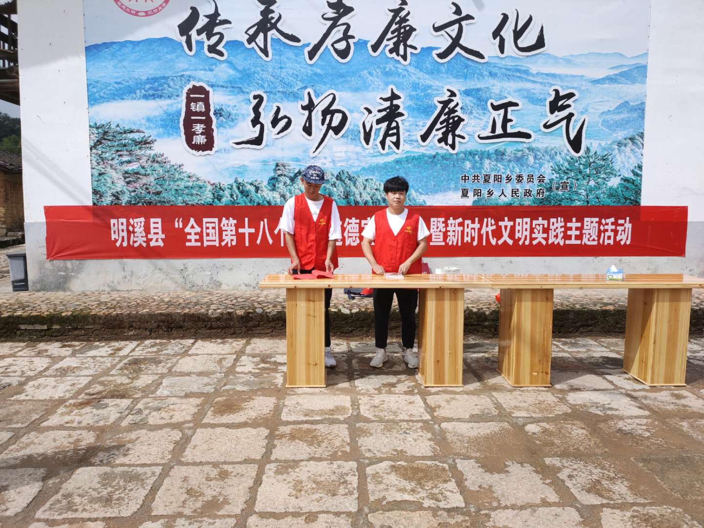 活動現場,人潮涌動,工作人員向過往游客積極宣傳《明溪縣文明市民手冊》、《新時代公民道德建設實施綱要》以及各種健康衛(wèi)生的生活方式和御簾古村傳統文化底蘊,并進行游客文明旅游宣傳勸導,游客紛紛表示受益良多,感受到道德的熏陶、文明的力量。孩子們在開展誦經典、傳經典的文化教育活動中不斷進步,聽著紅軍艱苦作戰(zhàn)的經典故事,孩子們紛紛表示要珍惜今天的幸福生活、刻苦學習、努力成長為擔當民族復興大任的時代新人。