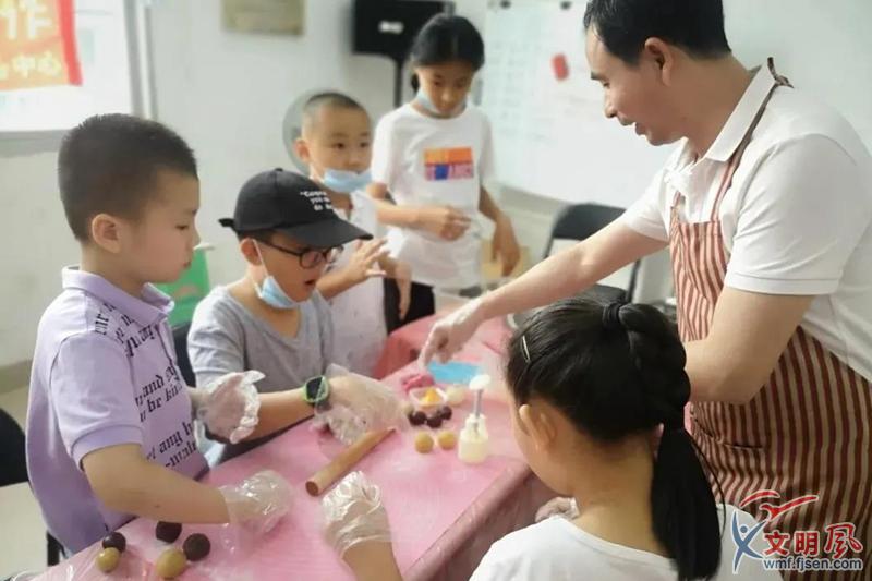 孩子們在志愿者的指導下制作月餅。江頭街道供圖