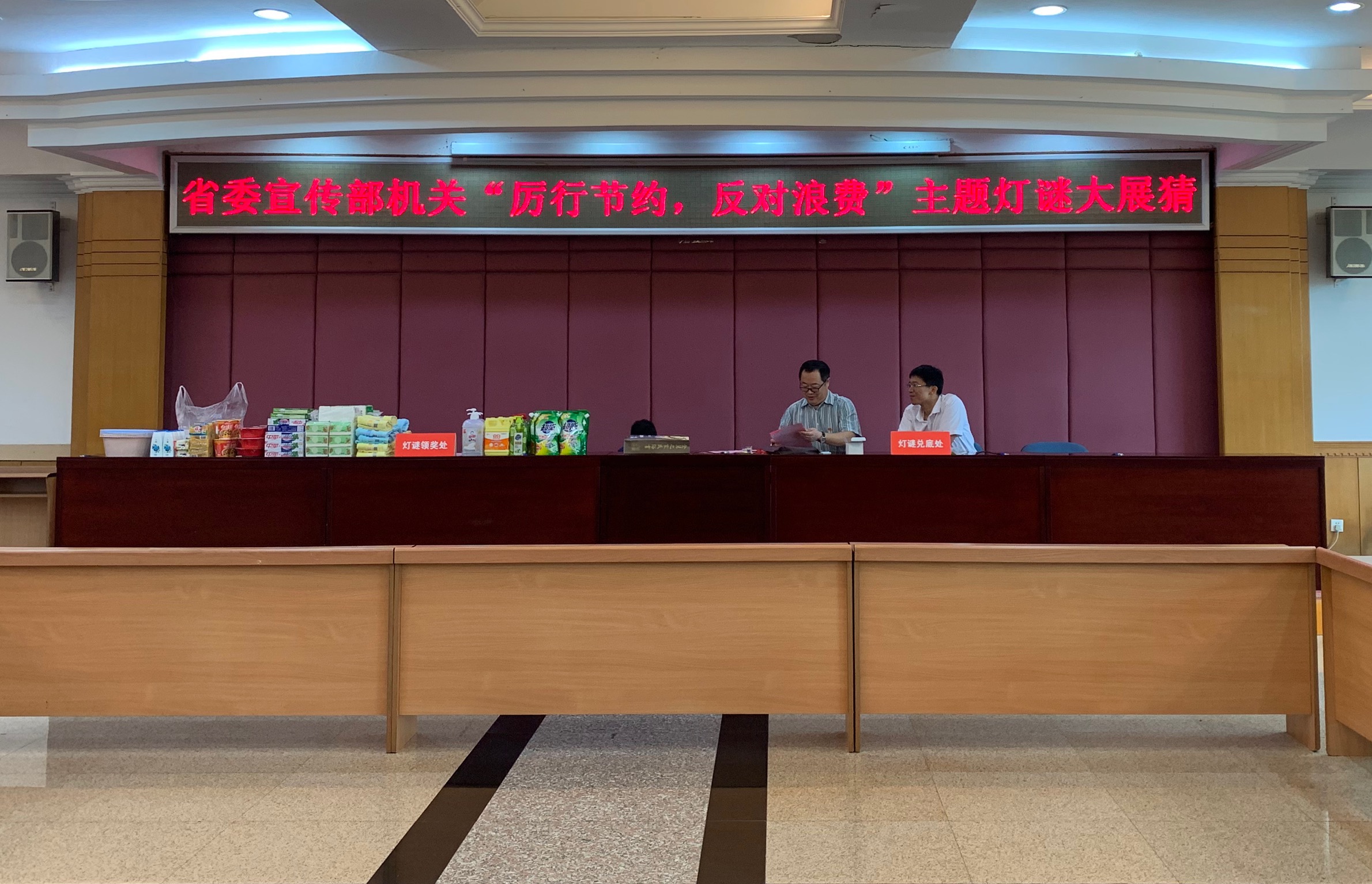 文明風10月10日訊 適逢國慶、中秋佳節來臨之際,為進一步營造濃厚節日氛圍、豐富機關干部職工業余文化生活,9月28日上午,中共福建省委宣傳部機關工會委員會、福建省民間文藝家協會,攜手福建省民間文藝家協會燈謎學術委員會在省委宣傳部機關成功舉辦 “厲行節約,反對浪費”主題燈謎展猜活動。