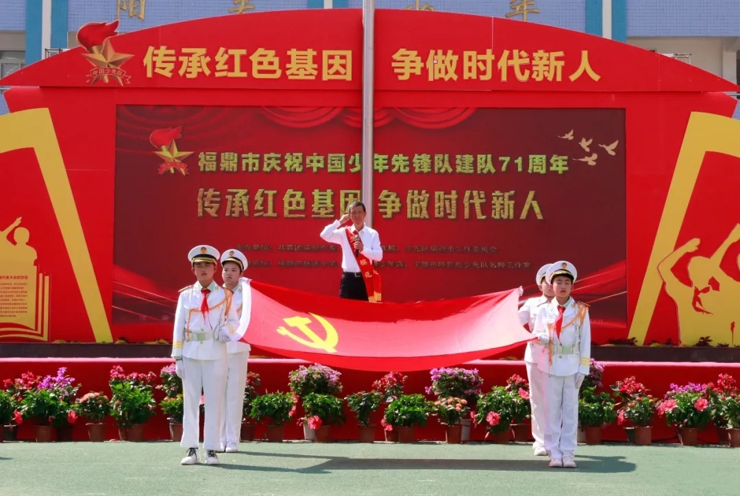 隨后,各聯合大隊唱響少先隊各時代經典歌曲,回顧少先隊走過的71年歷程,少先隊員在市少先隊總輔導員的帶領下,重溫入隊誓詞。福建省勞模、寧德市首屆道德模范鄧昌朝帶領全體少先隊員們發出“為共產主義事業而奮斗”的呼號。