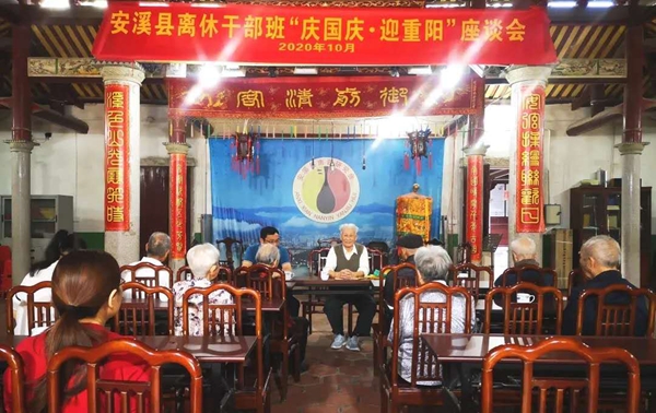 安溪縣離休干部班在舊城隍廟舉辦“慶國慶·迎重陽”座談會。圖源:安溪老干局