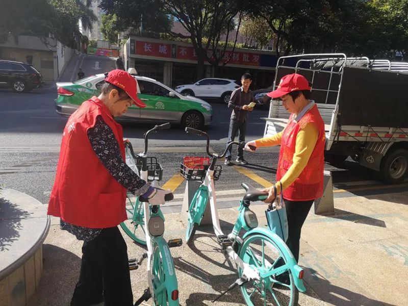志愿者規整共享單車(金山社區供圖)