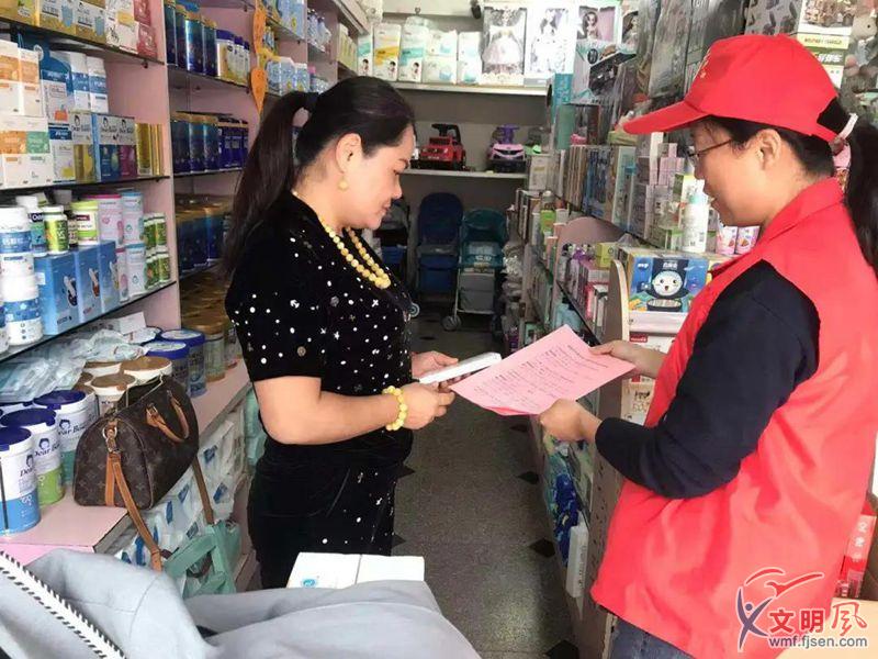 志愿者在商戶進(jìn)行文明宣傳。(殿前街道供圖)