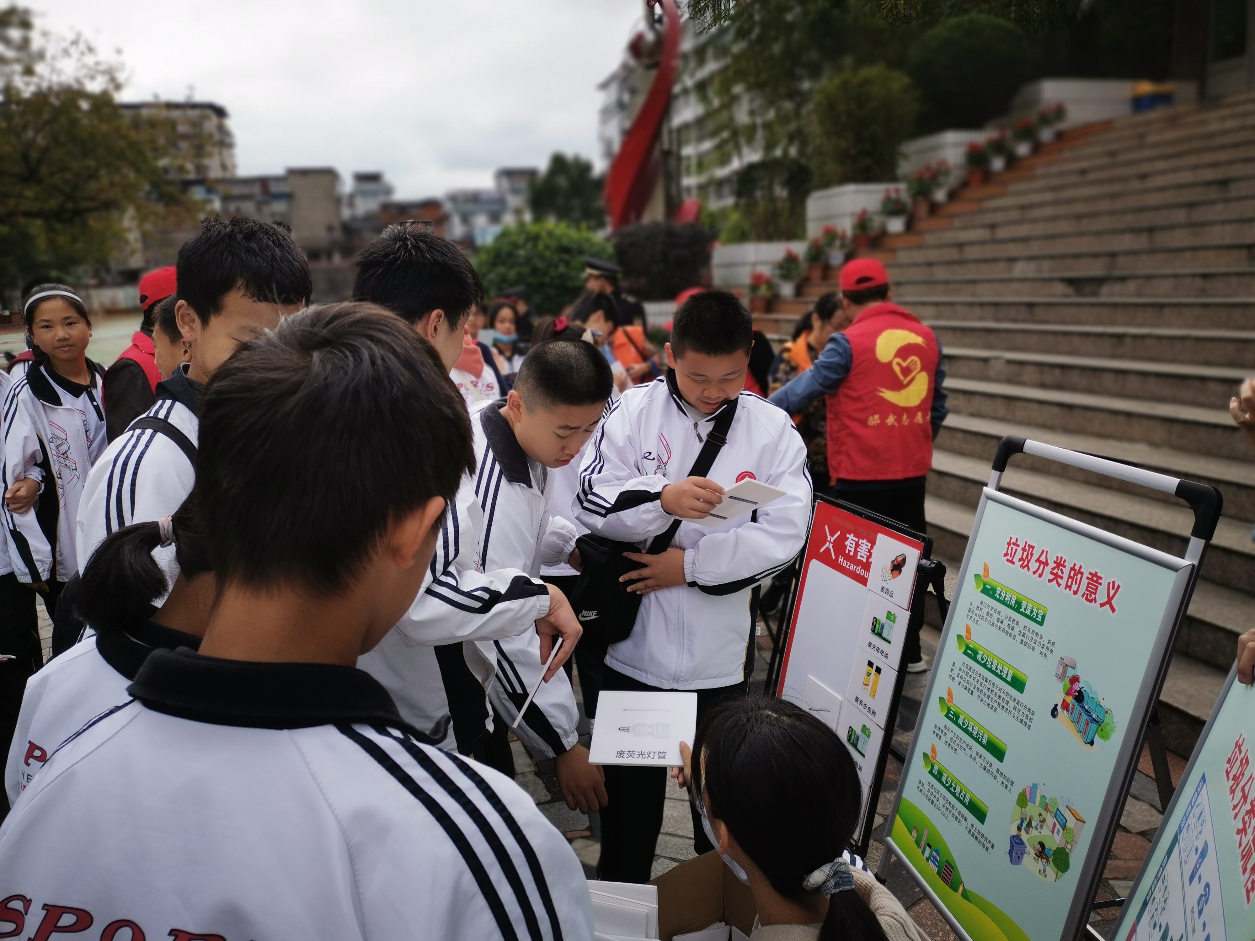 同學們在觀看垃圾分類展板