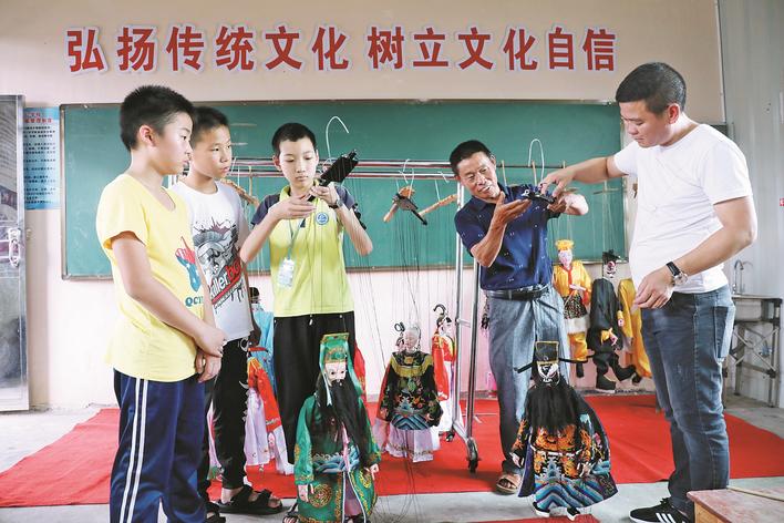 演木偶、唱山歌、誦經典、習書法……水茜中心學校豐富多彩的文化活動,為學生增添樂趣。為提高學生創作木偶劇本的能力,該校立足師生實際,注重課外延伸,積極引導學生誦讀《三字經》《滿江紅》《出師表》等經典作品及四大名著,不斷提高閱讀能力。教師在語文課中講解戲劇表演的基本知識,組織學生參與編寫木偶戲劇本,引導學生根據課文中的《將相和》《宴子使楚》《草船借箭》等歷史故事進行改編,讓木偶劇不斷校本化、課程化、兒童化。
