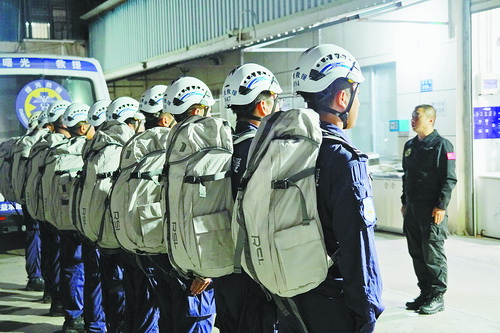 深夜,曙光救援隊(duì)成員集結(jié)完畢,準(zhǔn)備出發(fā)執(zhí)行救援任務(wù)。(廈門曙光救援隊(duì) 供圖)