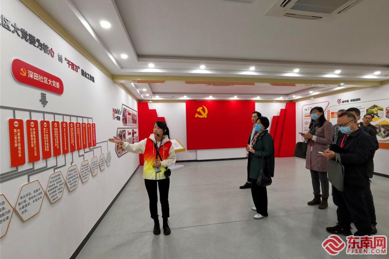 講解員為專家學者們介紹深田社區的黨委體系。(東南網記者 劉學佳 攝)