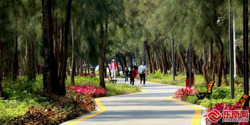 市民在花海谷公園內(nèi)的綠蔭之道散步。石獅文明辦 供圖