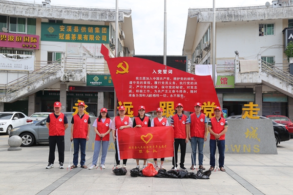 安溪縣人民檢察院組織黨員先鋒隊到茗城社區開展”煙頭不落地 安溪更美麗“志愿服務活動。郭艷娜 供圖
