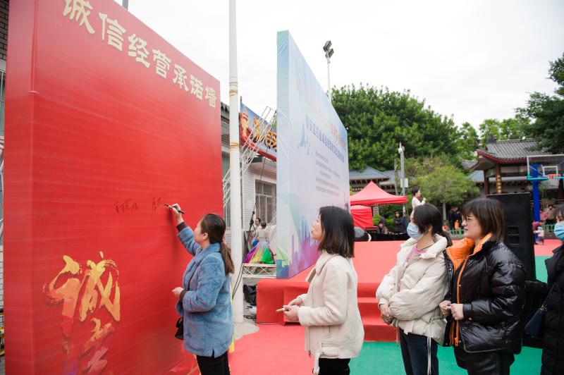 活動現場,晉安區有關部門授予世歐廣場10家誠信商戶代表“誠信經營商戶”牌匾,并組織各經營商戶在“誠信經營承諾墻”上簽下自己的名字。分會場設置誠信宣傳現場咨詢,通過宣傳單頁發放等互動形式,進一步提升企業誠信經營意識。通過開展此次活動,進一步保護消費者的合法權益,充分發揮先進典型的正面引導和示范表率作用,著力營造“守信得益、失信受制”的良好信用環境。