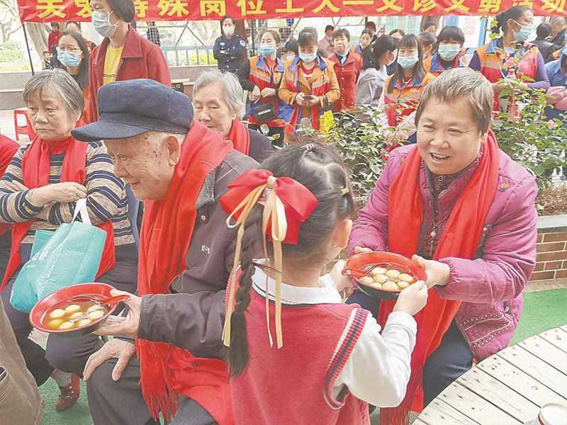 在湖里區(qū)呂嶺社區(qū),孩子們給社區(qū)老人送上暖心的湯圓。(資料圖片)